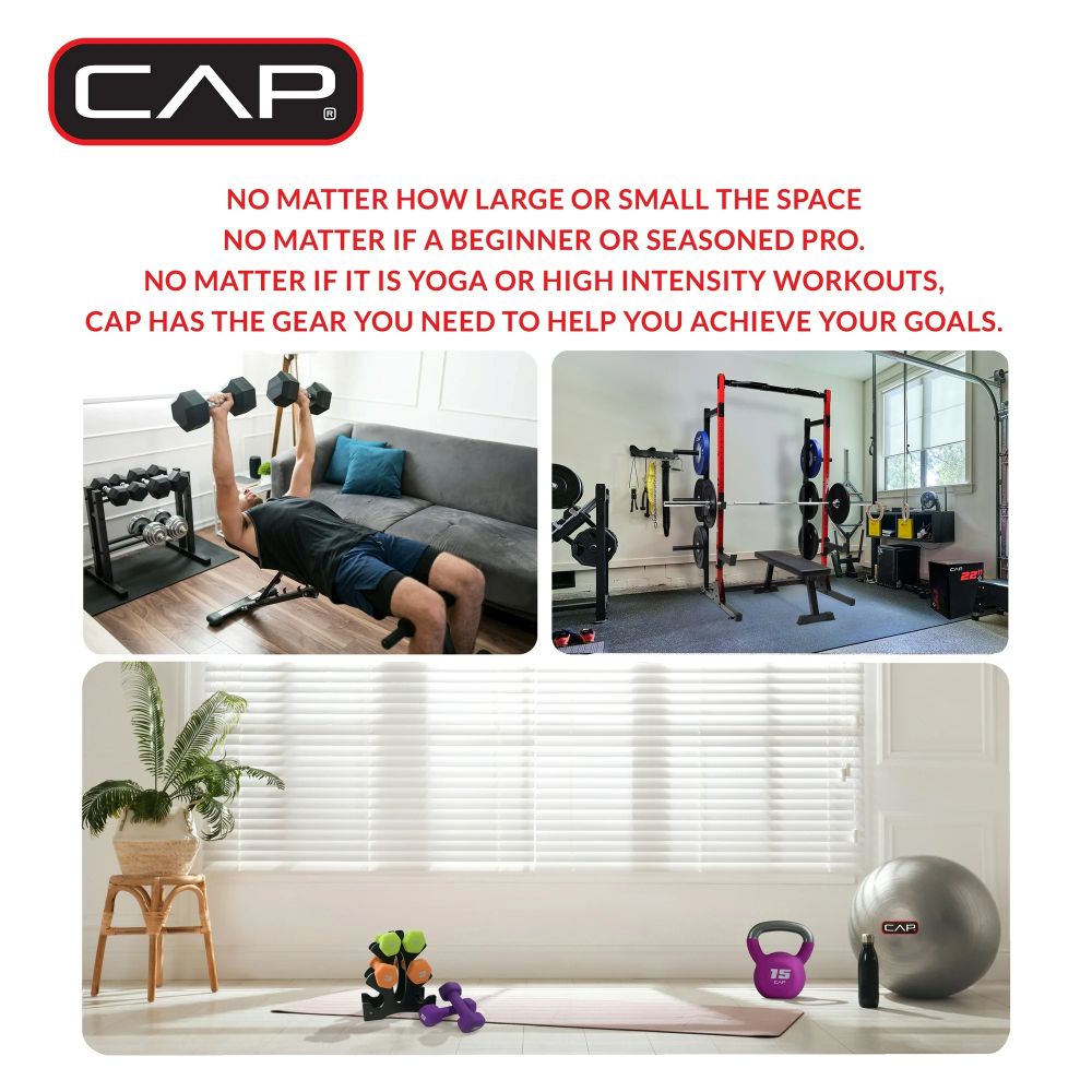 Enhance your workout routine with the CAP Barbell Coated Hex Dumbbell. This sturdy dumbbell is a premium quality weight that’s ideal for home use. Made of solid cast iron with a protective black coating, it features an easy-to-grip handle and encased heads to prevent damage to floors. The ergo designed handle helps to reduce hand fatigue and maximize comfort, while the knurling prevents the dumbbell from slipping during workouts. The Hex shaped dumbbell heads ensure the dumbbell will not roll when set down, avoiding injuries and allowing for easy storage. Dumbbells can be used to exercise all major muscle groups, including arms, chest, back, abs, legs and core. Making them perfect for a full body workout. Sold individually.