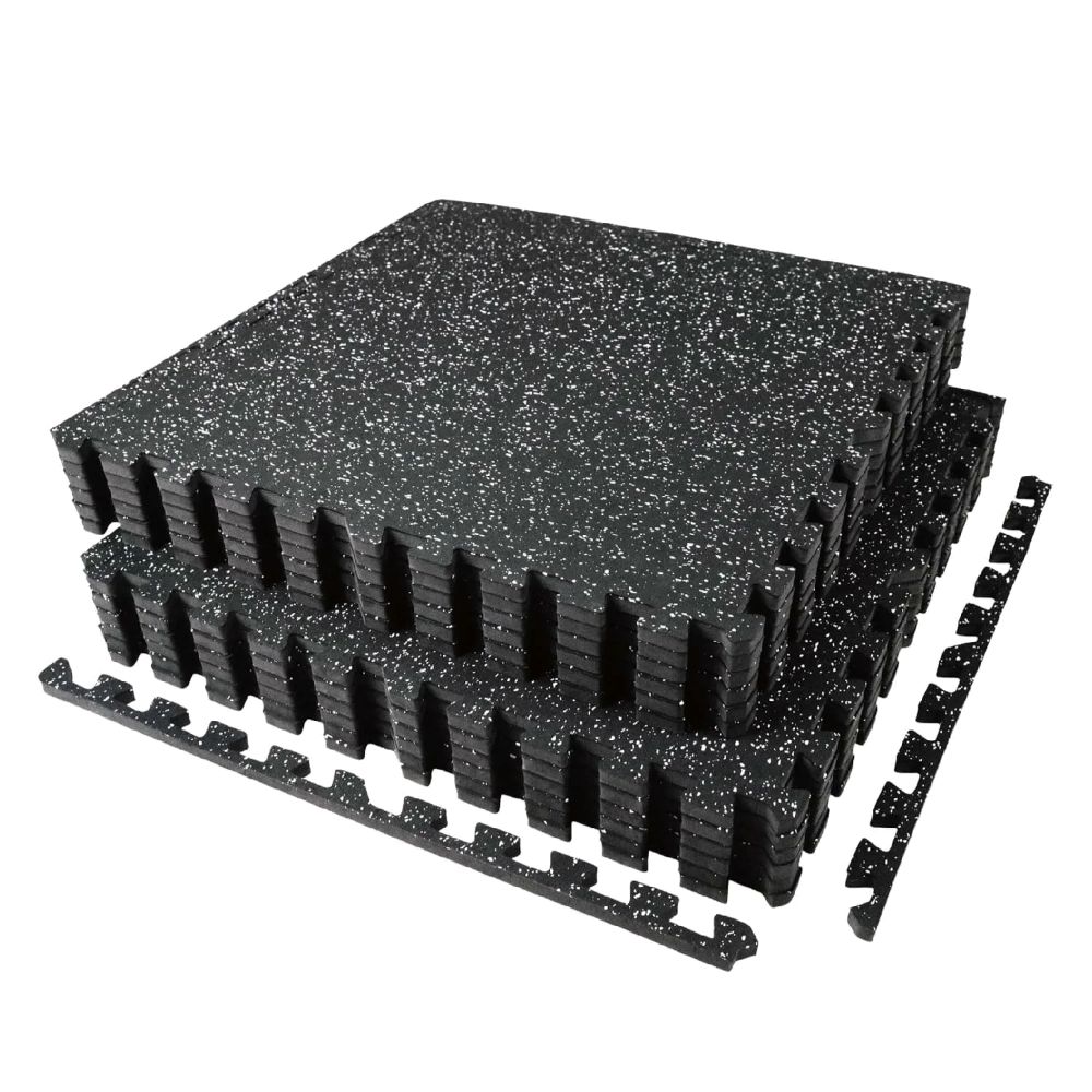 Make Your Home Gym with Rubber Top Exercise Mats Upgrade your workout space with Rubber Top Exercise Mats, designed for a pro-grade experience. Each 24″ x 24″ x 0.56″ mat in this 12PCS set covers 48 sq ft and offers excellent traction and impact absorption with high-density EVA foam and durable rubber tops. Suitable for yoga, weightlifting, cardio, and more, these mats protect floors from scratches and dents while reducing noise. Waterproof and easy to clean, they are perfect for adults. Elevate your fitness routine today!