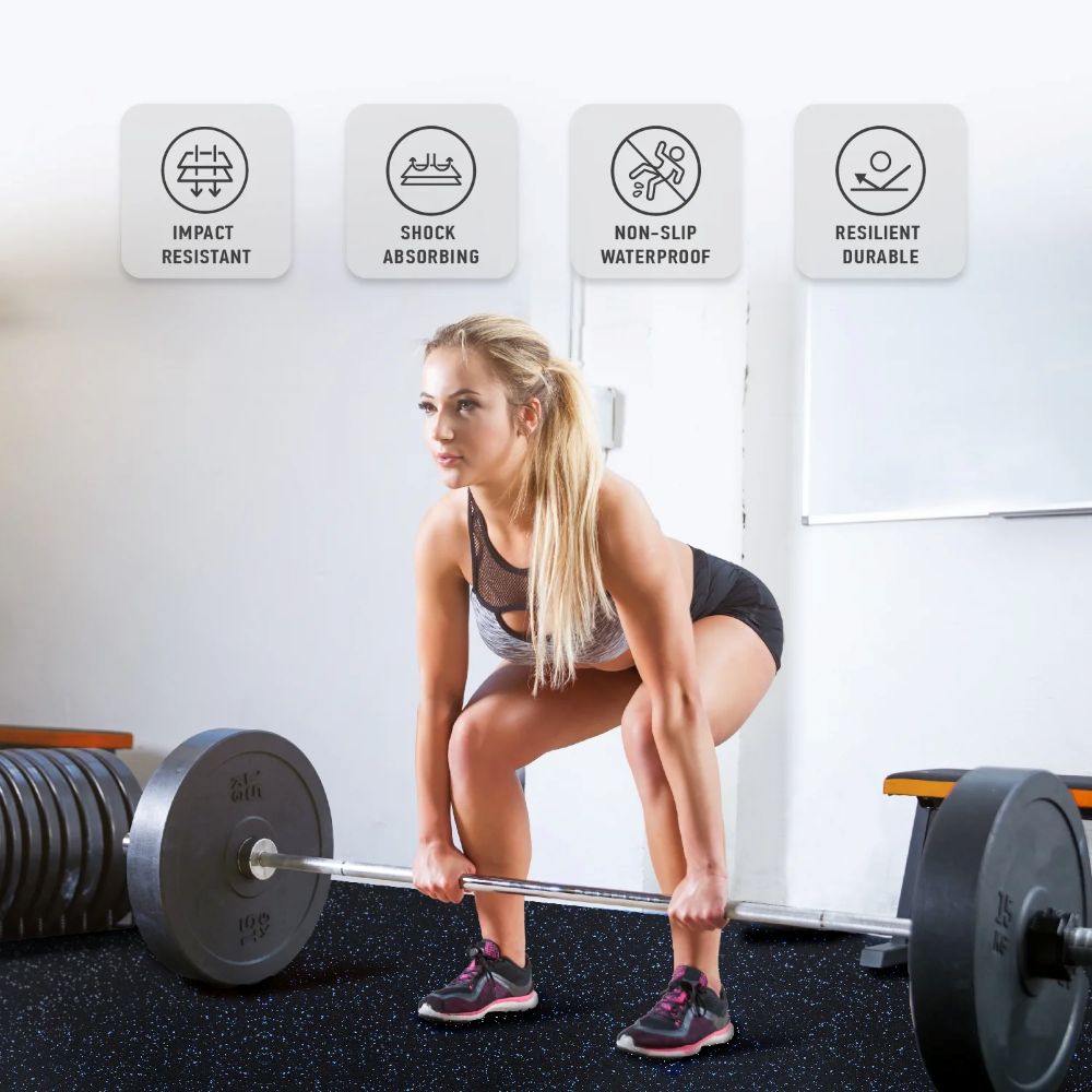 - [Sturdy Rubber Build]: Crafted from premium recycled rubber, our gym mats handle intense workouts with ease. These resilient tiles effortlessly support heavy machinery, providing reliable floor protection against scratches, scuffs, and dents from weights, dumbbells, medicine balls, jump ropes, and other workout gear in a home gym.