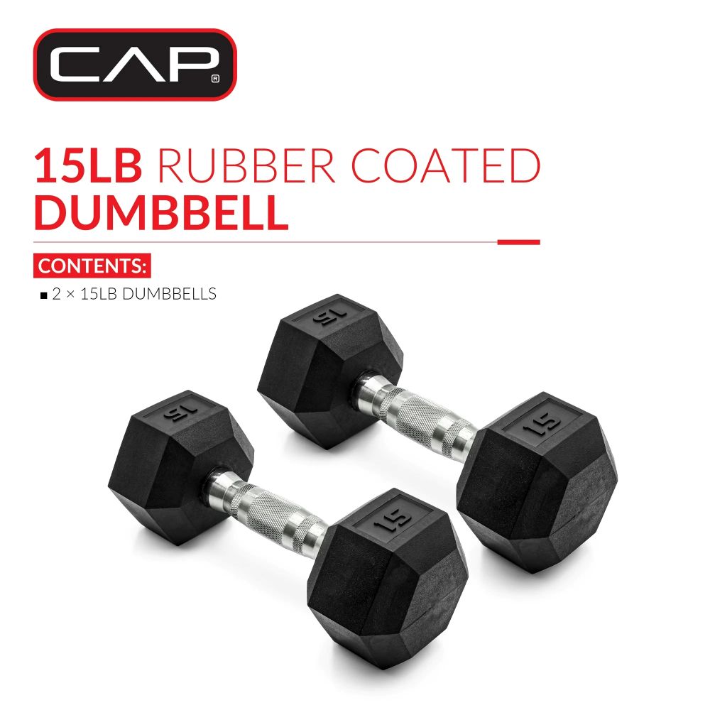 CAP Barbell, 15lb Coated Rubber Hex Dumbbell, Pair