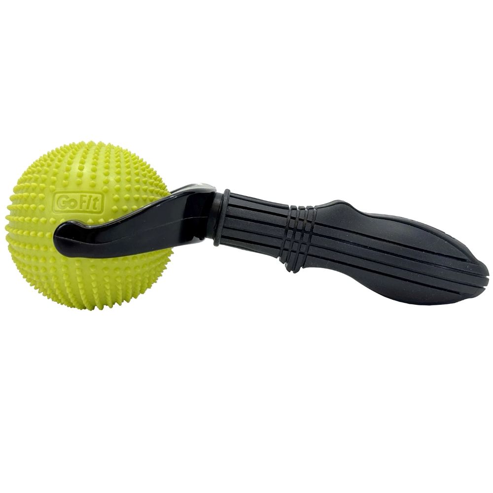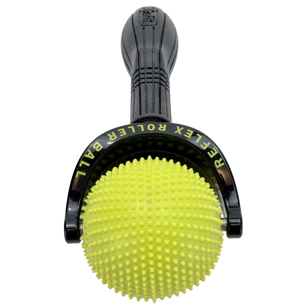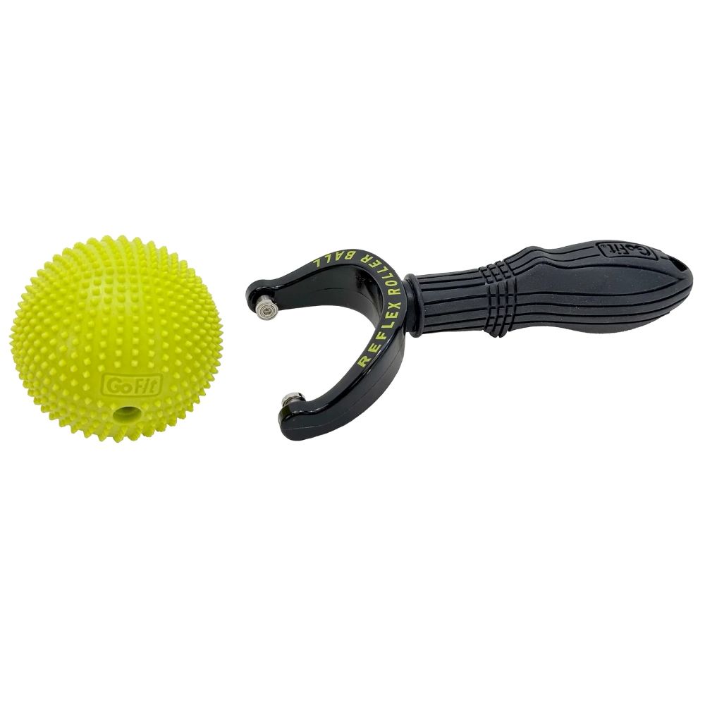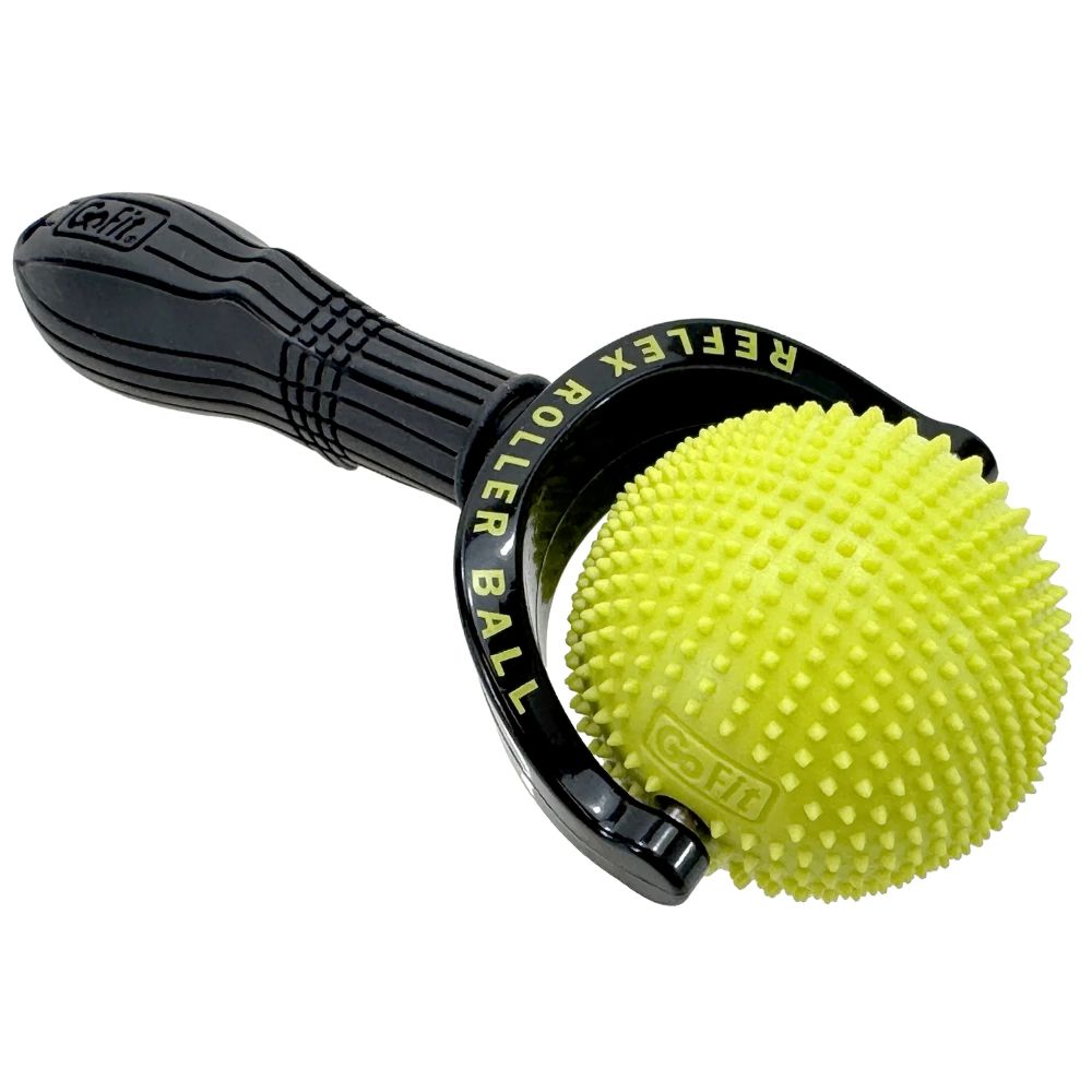 Rolling reflexology and stimulating massage! The GoFit® Reflex Roller Ball with molded studs targets your tight muscles with a stimulating massage, and is your ultra-portable option for massage on the go. It features a high-quality EVA removable ball for free rolling massage while the comfortable, ergonomic handle provides a secure grip when attached. The Reflex Roller Ball will quickly become your go-to recovery tool for chronic painful areas such as shoulders, elbows, forearms, and feet.